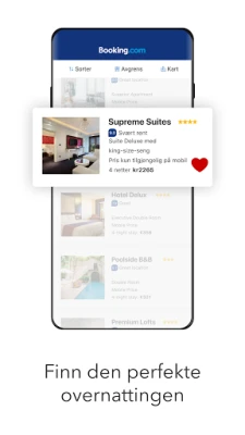Med et imponerende utvalg på over 1 million hoteller, leiligheter og unike ferieboliger, finner du garantert det som passer perfekt for deg. Booking.com gjør søket lekende lett: filtrer etter by, attraksjon, spesifikke fasiliteter som WiFi, eller se hva som finnes i nærheten med ett trykk. La deg veilede av 107 millioner verifiserte gjesteanmeldelser og interaktive kart som lar deg visualisere ditt ideelle opphold. Enten du jakter på luksus eller et koselig krypinn, hjelper Booking.com deg med å sikre den beste prisen – mange valg kan til og med reserveres uten behov for betalingskort.