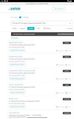 I dag er denne tjenesten en betrodd følgesvenn for over 10 000 mennesker hver uke, som stoler på den for å finne et minyan. Enten du er hjemme eller på reise, tilbyr den enestående letthet og pålitelighet i søket ditt. Med et omfattende nettverk og kontinuerlig vedlikehold sikrer Dr. Yosi Fishkin's banebrytende initiativ at du aldri er langt unna et sted å be. Stol på en tjeneste som har bevist sin verdi for et globalt fellesskap i over to tiår.
