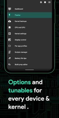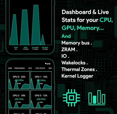 Dykk ned i en verden av presisjonsjustering med verktøy for å finjustere CPU-frekvenser, guvernører, og GPU-ytelse for toppnivå i enhver situasjon. Skap dynamiske "per-app"-profiler som automatisk tilpasser ytelsen – maksimer kraften under spilløkter, og spar strøm når du leser en e-bok. Batteristyring tar en ny vending med detaljert overvåkning som viser nøyaktig strømforbruk per komponent, estimater for ladetid og sanntidsbruk av systemressurser som CPU, GPU og RAM. Franco Kernel Manager gir deg oversikten og kontrollen du trenger for en smartere, mer effektiv enhet, inkludert kraftige tips for å forlenge batteriets levetid med et enkelt trykk.