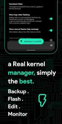 Franco Kernel Manager tar bekvemmelighet til et nytt nivå ved å la deg installere kjerner, Magisk-moduler og andre flashbare ZIP-filer direkte fra appen, uten behov for en tilpasset gjenopprettingsmodus. Du får også tilgang til en Build.prop-redigerer og kan sikkerhetskopiere/gjenopprette kjerner med et tastetrykk. Appen forbedrer også din visuelle komfort med funksjoner som automatisk nattmodus for øyeavlastning, tilpassede fargetemperaturer og høy lysstyrkemodus for støttede enheter. Med omfattende systemovervåkning, skriptbehandling og muligheten til å tilpasse nesten hver eneste kjerneinnstilling, er dette den ultimate verktøykassen for din Android-enhet. Francisco Franco er her for å hjelpe, og gir uovertruffen støtte hvis du skulle ha spørsmål. Merk at de fleste funksjoner krever root-tilgang, men batteriovervåkningen fungerer uten.