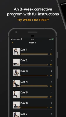 Over en periode på åtte uker vil du hver dag motta en serie nøye utvalgte øvelser, komplett med detaljerte forklaringer og visuell veiledning, designet for å forbedre bevegelsesområde og styrke kroppens holdningsmuskulatur. Hver enkelt øvelse er grundig testet og tilpasset for maksimal effekt mot avrundet rygg. Programmet sikrer en gradvis og kontinuerlig fremgang som passer perfekt for barn, ungdom og voksne som ønsker å ta kontroll over sin holdning på en profesjonell og trygg måte. Ved konsekvent gjennomføring vil du oppleve merkbar forbedring og etablere varig postural kontroll.