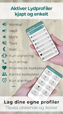 Forestil deg en hverdag hvor telefonen din intuitivt tilpasser seg dine omgivelser og behov. Med Lydprofiler er frustrasjonen med manuelle innstillinger en saga blott. Denne intelligente appen gir deg enestående kontroll over enhetens lydbilde, slik at ringevolum og varslingsnivåer justeres presist for hver enkelt situasjon. Enten du er dypt konsentrert i et møte, slapper av hjemme, eller er på farten, sørger Lydprofiler for at din digitale tilstedeværelse alltid er optimal. Du kan til og med finjustere Ikke forstyrr-modusen, slik at kun de viktigste kontaktene slipper igjennom – alt basert på dine personlige preferanser.