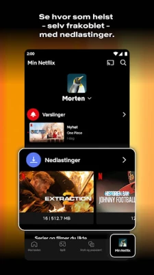 Familiens yngste medlemmer kan trygt utforske et eget, kuratert utvalg av barnevennlige filmer og serier, designet for å underholde og inspirere i et trygt miljø. Hold deg oppdatert med korte forhåndsvisninger av kommende utgivelser og motta varsler, slik at du aldri går glipp av nye episoder eller premiere. Netflix redefinerer din underholdningsopplevelse, tilbyr en personlig og mangfoldig reise gjennom det beste innholdet.