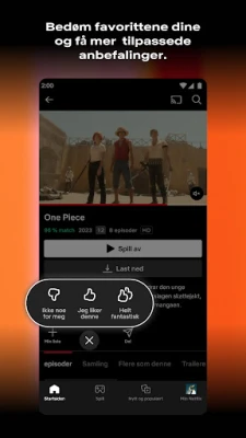 Netflix' bibliotek utvides kontinuerlig med ferske titler som legges til hver eneste dag. Utforsk de siste tilskuddene eller finn frem til dine tidløse favoritter med enkelhet, og strøm dem uten avbrudd. Jo mer du ser, desto bedre blir Netflix til å forstå dine unike preferanser. Dette sikrer at du alltid mottar skreddersydde anbefalinger som garantert vil fange din interesse og tilbyr nye spennende opplevelser.