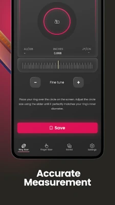 Slutt å gjette ringstørrelsen din! Ring Sizer forvandler den tradisjonelt kompliserte prosessen med smykkemåling til en lek. Med intuitive visuelle veiledninger oppnår du enestående nøyaktighet for ringer, armbånd og andre verdifulle gjenstander, rett fra skjermen din. Si farvel til tungvinte verktøy og omfavn en sømløs metode for å finne den perfekte passformen, hver gang. Ring Sizer er designet for å gjøre presisjon tilgjengelig og uanstrengt for alle.