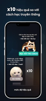 Velger du The Coach, investerer du i en læringsreise som er både effektiv og kostnadsbesparende. Mange opplever å spare betydelige summer sammenlignet med tradisjonelle kurs. Appen er designet for å hjelpe deg med å overvinne hemninger; hele 76% av brukerne som tilbringer fem timer i The Coach føler seg tryggere på å snakke med fremmede. Vi fokuserer på å lære deg fraser og uttrykk – ikke bare enkeltord – noe som forenkler innlæringen og bygger opp din evne til å reagere naturlig på under tre sekunder. Dette bidrar til at du endelig tør å "åpne munnen" og øve deg til flyt, med en klar og strukturert læringsplan tilpasset ditt nivå.